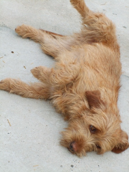 Se présente bien, excellente proportion, belle tête, DCC, oreilles de bonnes longueur et bien insérée, belle sortie d'encolure, le dessus est soutenu, excellente poitrine, excellente angulation et pied, fouet de bonne longueur et bien porté, excellent poil, mut correcte.